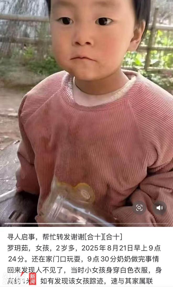 8月21日,霍南(Hunan)在肖阳的新肖县的一个2岁女孩在她家门口神秘地消失。 22日下午,失踪的女孩Lu Yueru的父亲Luo告诉记者,他的跟踪镜头表明,8月21日上午9:25,最初在他家门口玩耍的男孩突然在录像中消失了。当祖母在房子附近做农场工作时,发现孩子失踪了,她立即搬了村民,以帮助她找到它。 22日下午,新闻县达克辛镇的记者得知工作人员已经安排了搜查,直到现在才发现孩子。在22岁的14:00时,Luo先生告诉记者,他和他的妻子在广泛工作Ng,这个孩子通常在家里受到他的祖母的照顾。在21日上午,奶奶在男孩在门口玩耍时,在离家不远的地方做农场工作。 Luo先生说,跟踪录像显示,大约在21日上午9:25左右,男孩手里拿着两个玩具球,穿着白色衣服和彩色拖鞋,高约1米,追逐两只鸡,走出监测范围。在9:30左右,男孩的祖母回到他家门口,发现孩子失踪了,所以他立即搬了村民去找到它。失踪女孩的家人在社交平台上发布了一个缺少的通知。应thatlost女孩的父亲的要求,孩子的脸没有编码以传播有关孩子失踪的信息。 (来源/互联网)“我搜索了所有的悬崖和森林,但我没有找到儿子带来的玩具和拖鞋。”这个男孩的父亲卢先生用一个猛烈的声音告诉记者,事件发生后,他和妻子急忙一夜之间回家。他们回家的时候差不多凌晨4点。 Luo先生还指出,他的门周围有许多悬崖,最近的悬崖距离孩子失踪的地区十多个距离。事件发生后,他还检查了邻居的房子,但没有显示孩子的痕迹。目前,警察和蓝色天空救援队和其他部队正在现场进行地毯搜索,还使用警察无人机和狗look上的地毯,但没有发现孩子的痕迹。 22日下午,新谢沙县达辛镇政府的工作人员告诉记者,搜索任务仍在进行中,迄今尚未发现孩子。一般新闻内部记者朱·隆昌(Zhu Rongchen)记者ren li(资料来源:一般新闻)
