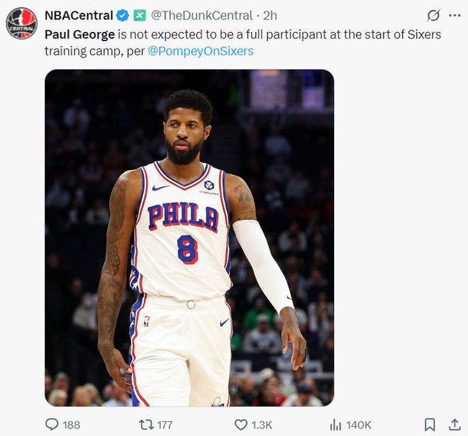 9月27日,北京时间,费城76人举行了媒体日。今天,保罗·乔治(Paul George)接受了费城媒体的独家采访。在一次采访中,他宣布他的膝盖受伤仍在康复中,他不会参加球队的季前训练营。乔治在上个赛季发表了评论:这是我度过的最艰难的一年,从我个人的角度来看,去年很糟糕,这对我来说是一个超高估的时期。 [乔治上个赛季因受伤而打了41场比赛,场均贡献32.6分钟,仅得分16.2分,5.3个篮板,4.3个帮助,0.49个盖帽,投篮命中率为43%,三分球命中率为35%,乔治也透露:教练人员也透露:教练人员也信任我。他们希望我将扮演伊桑导师的角色,以帮助年轻球员进步。在新赛季,我在第四位。如果我十年前安排了第四位,那我绝对不满意,但是现在我觉得自己'M适合球在球上的角色,我准备让年轻球员统治翼空间,并为Grimes,Oubre等创造机会。谈到我在7月的膝关节镜检查的左手手术时,乔治说他的病情越来越好。接下来的几周培训特别重要,因为如果我可以在本赛季初首次亮相。希望我能尽快首次亮相。就身体的感觉而言,我比去年更好。我坚信我仍然是联盟的领先球员。我是费城签约的乔治,薪水高。我仍然有很大的潜力,仍然可以打高水平的篮球。乔治还透露,他现在在左膝盖上感觉很好,所有类型的训练都是以适当的方式进行的,而且还有训练可以承受重量。尚未进行完全接触的对抗训练。您可以尝试一些训练对抗n在接下来的几周内查看膝盖状态。