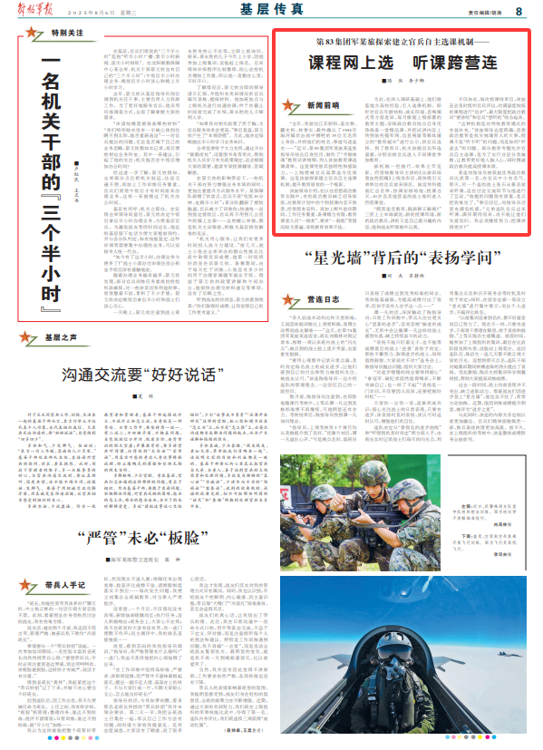 第83军队的一个旅探索了1944年建立了一种为Haihe Town独立选择的机制,并在公司的历史上写下了他们的名字和作品……”最近,Zhang的导师Zhang是第83组军队的第83组组的第83组组的公司,合并了他自己的经验,并在Brig列出了Brig中,并将其纳入Brig。在其独特性和吸引力下,该班级被选为一旦启动,就被评为高质量的官员和士兵。它是建立独立选择官员和士兵的机制的旅的缩影,以提高旅的教育质量和教育。在过去的意识形态技能中,一些政治教师缺乏个人理解,对教育计划中的教学内容不熟悉,并且经常遵守文本。此外,在现场培训期间,工作任务很重,E准备课程的nergy有限。课堂上的课堂工作人员很普遍,导致教育不良。在此之前,基于深度研究,他们从当地大学的经验中学到了学习,并引入了课程选择机制。也就是说,根据上级发送的教育主题,为了应对年龄结构,增长环境的变化,对官员和士兵的模式的思考,政治教师被安排根据自己的优势来准备高质量的班级,并在诸如Qiangjun网络和Windows Windows信息的“ Windows超市”的演讲中上传“ Windows超市”的演讲,以供公众提供公共官员和官员。在教育日,器官安排官员和士兵参加不同的班级,根据官员和士兵的选择参加教育。实施新机制时,效果会立即。在看着BL之后第四营讲师指示的“基于OODY”的基础是在线发布,兄弟单位的官员和士兵很快吸引了注册。并退火的thirsty! “第三营的中士宋·海宾(Song Haibin)说,新的教学环境和新的政治教育者正在谈论他感兴趣的事情,他和他的同伴认真倾听。不仅在每次演讲之后,旅中,旅还将安排官员和士兵及时地检查政治教师的统治方式,以征服官员和官员的说法。教育主题允许官员and soldiers to choose courses independently to implement stratified and classified instruction, so that education can be better to embrace the mind and heart, and at the same time forces political teachers to improve their teaching skills. The mentor Liu of a specific company used to be the first place in the rare competition of the political educator of the brigade and well-known officials and soldiers.那天,另一家公司的另一家士兵来听班,并通过讨论和交流与他联系。 “他提出的问题质量很高,我几乎很难过。” Later, the words of mentor Liu were filled with crisis, "Company and soldiers officials came to listen to class, and came with hope. They did notT let them go back to frustration. I should continue to work hard and teach the class better! Carrying
